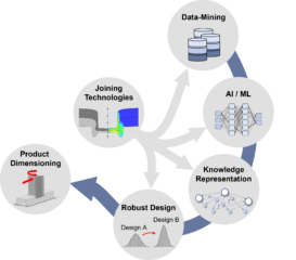 The Chair of Engineering Design (KTmfk) is represented with the subproject “Methodical Design of versatile Joints” and will focus on the robust and data-driven dimensioning and design of mechanically joined assemblies in the 2nd funding period.