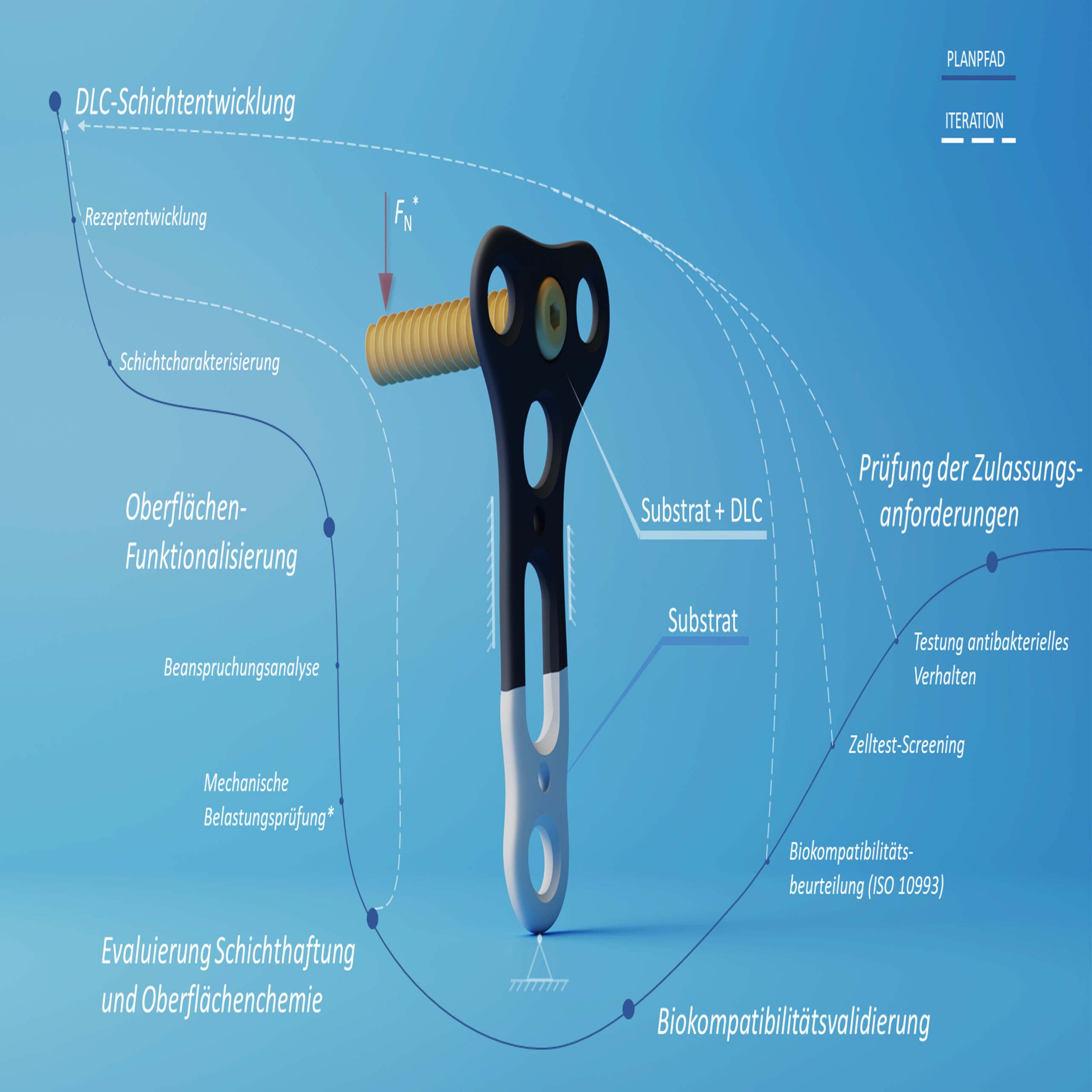 With increasing life expectancy and growing interest in physical activities, the number of bone injuries and fractures is steadily rising. For successful healing, implants are used to ensure stable fixation of the bone. These so-called osteosynthesis products must exhibit high mechanical stability, excellent aseptic properties, and controlled tissue integration to enable a complication-free healing process and easy removal after recovery.